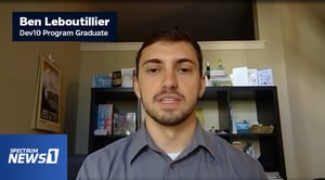 Profiled in the news segment with Lippman and Angelia Brekke, Managing Director at Genesis10, is Ben Leboutillier. Leboutillier, who has a degree in physics, was working as an EMT when he decided to change careers and become a software developer. Dev10 helped him land a new role as a Data Quality Analyst with a key Genesis10 client in the healthcare industry in Charlotte.