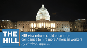 Genesis10 CEO Harley Lippman has written an op-ed piece in the publication, The Hill, "H1B Visa Reform Could Encourage Companies to Hire More American Workers" that addresses the "Protect and Grow American Jobs Act" which the House of Representatives Judiciary Committee recently voted to send to the full House chamber.